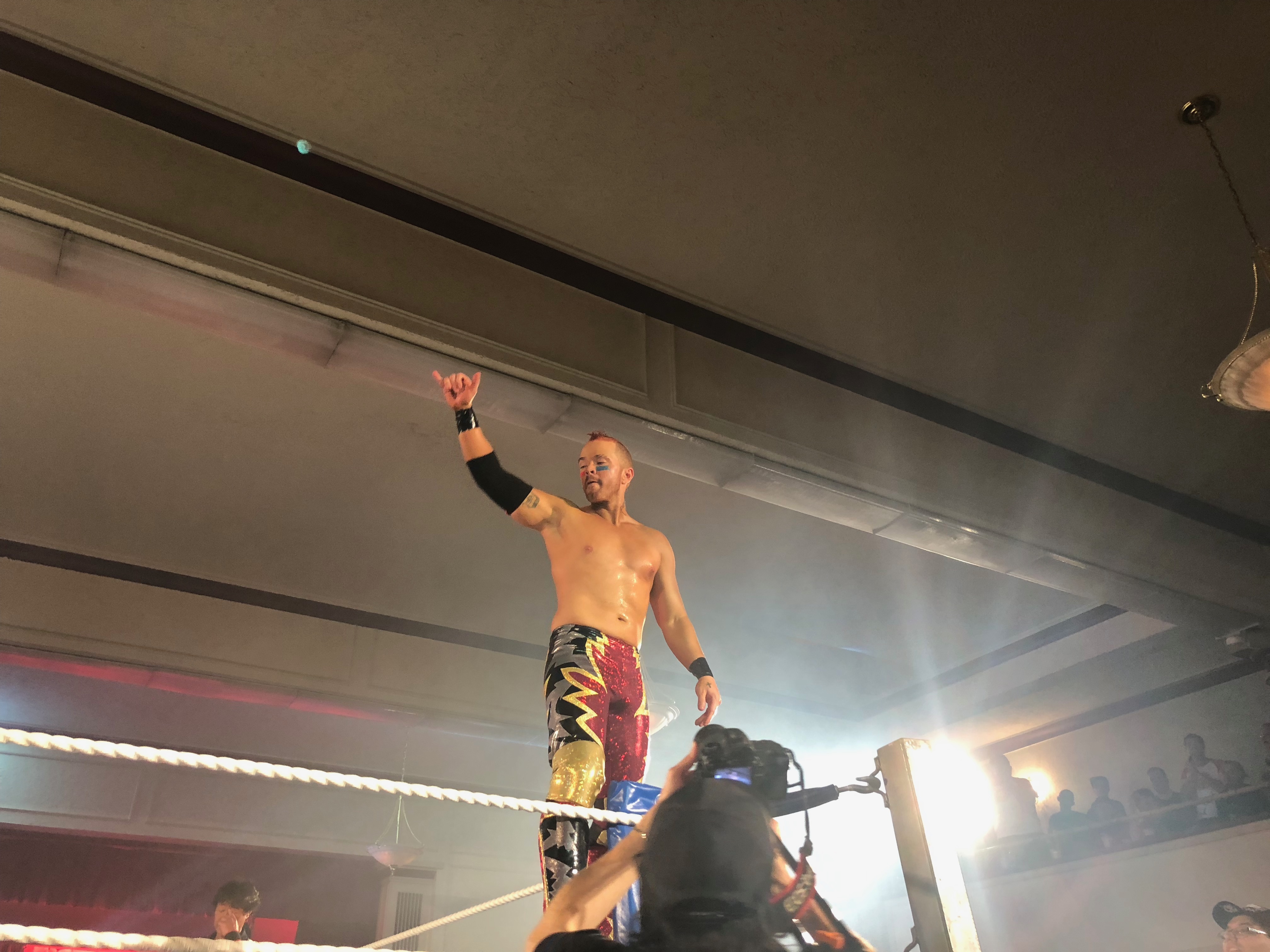 The other night, Will Ospreay and the Amazing Red told a story about a smaller, semi-retired guy battling one of the best wrestlers in the world. Will Ospreay wrestles as a junior heavyweight, but this summer he also competed in the G1 Climax tournament. That’s for heavyweights. Will won 4 out of his 9 matches against some of the best in the world. He’s over six feet tall. Amazing Red is 5′ 4″.