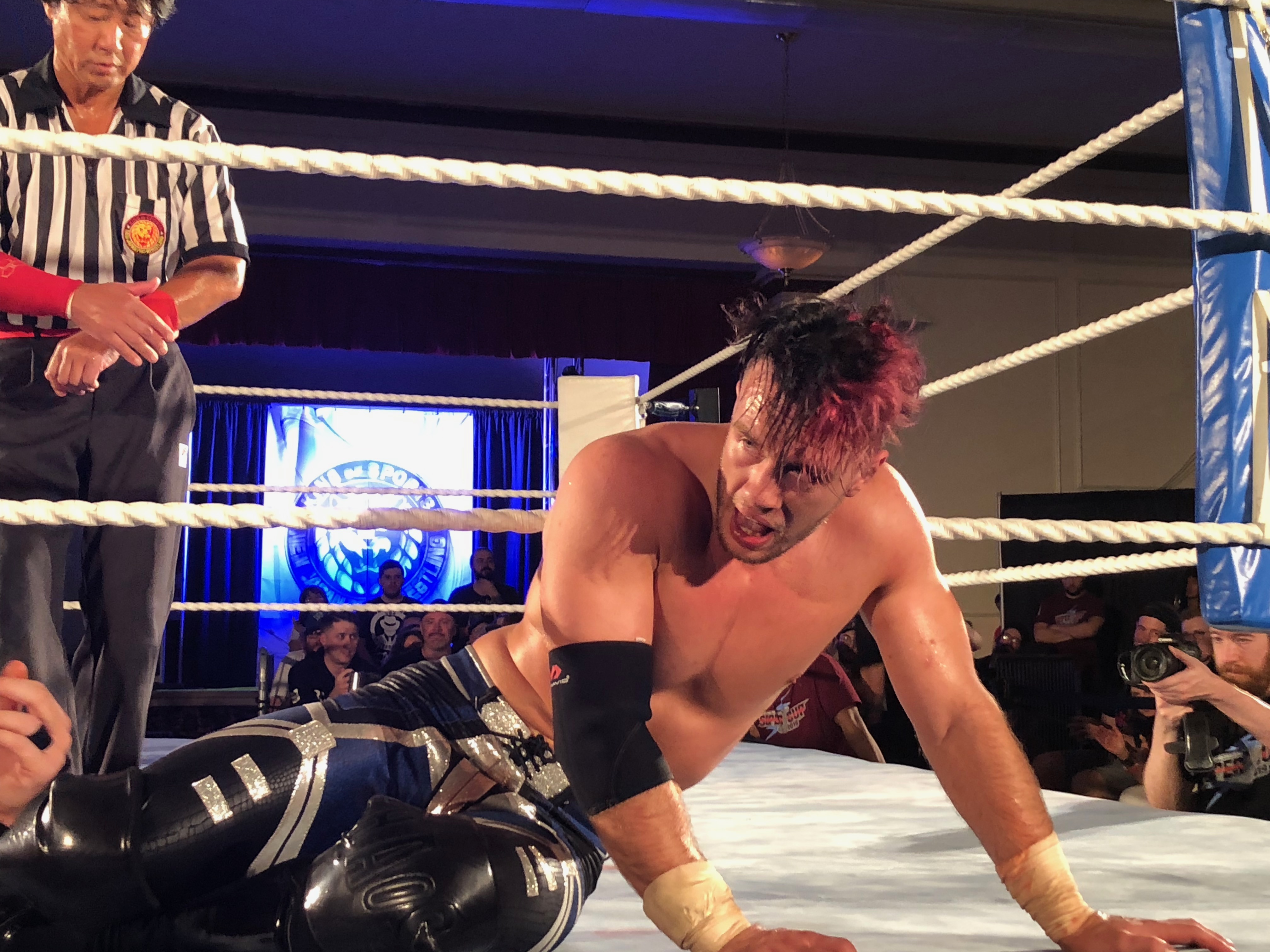 Unsurprisingly, Red wrestled as the underdog and came spitting distance from winning. That’s a pretty great story. Also great: watching these two master craftsmen sell that story. It’s not even remotely believable, except that they both knew how to make each other look good. At one point, Red hit his big match-winning move, his finisher. Ospreay didn’t kick out of it, because that would have established him as clearly superior. He just barely managed to get his foot onto the ropes, which breaks the pin without diminishing Red. Subtle stuff.