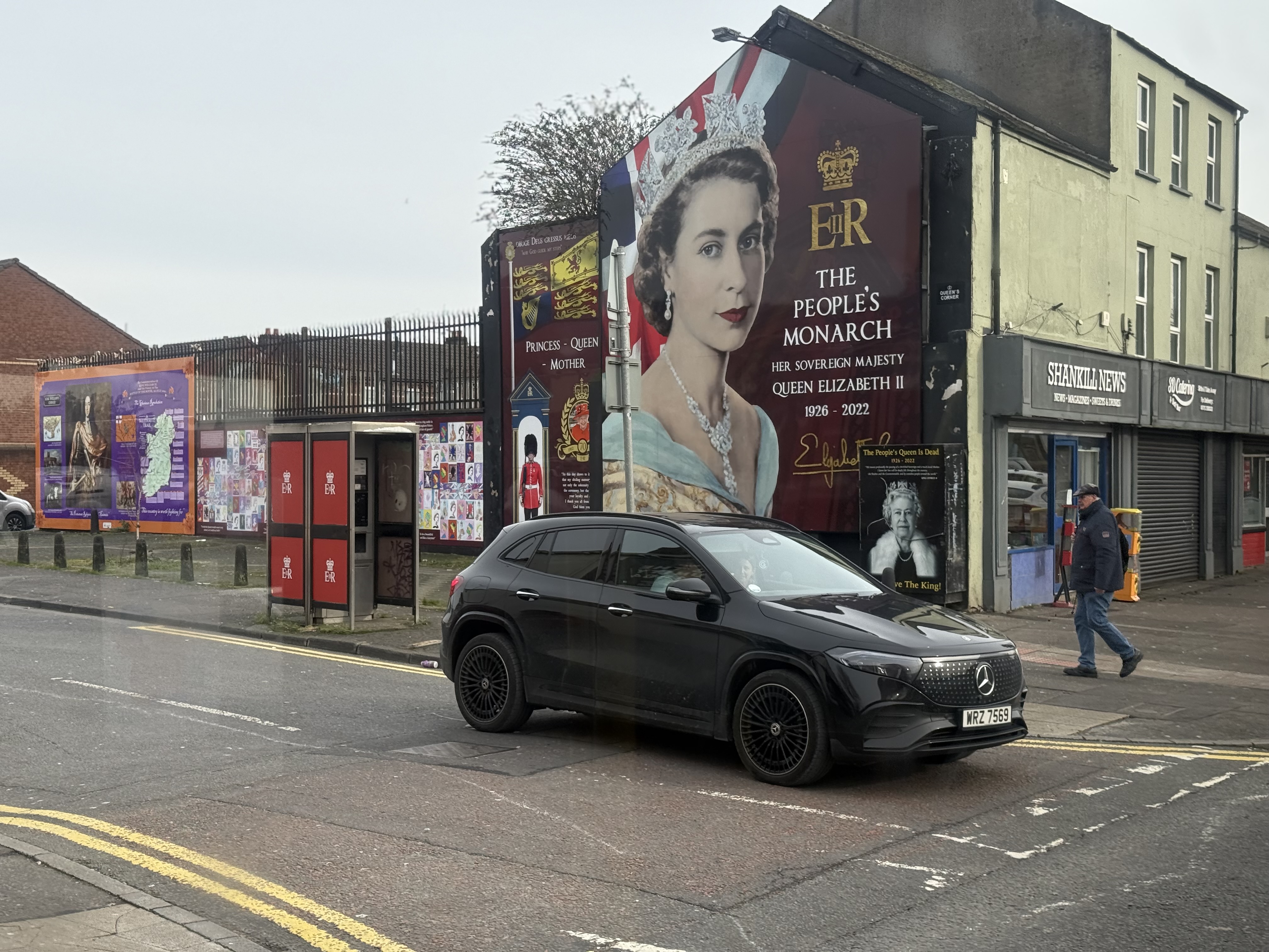 I think the most striking thing for me was on Shankill Road, driving past a mural commemorating Queen Elizabeth II. It’s pristine, even on a chilly day after rains. People put effort into keeping it that way; the British monarchy is important to that neighborhood.