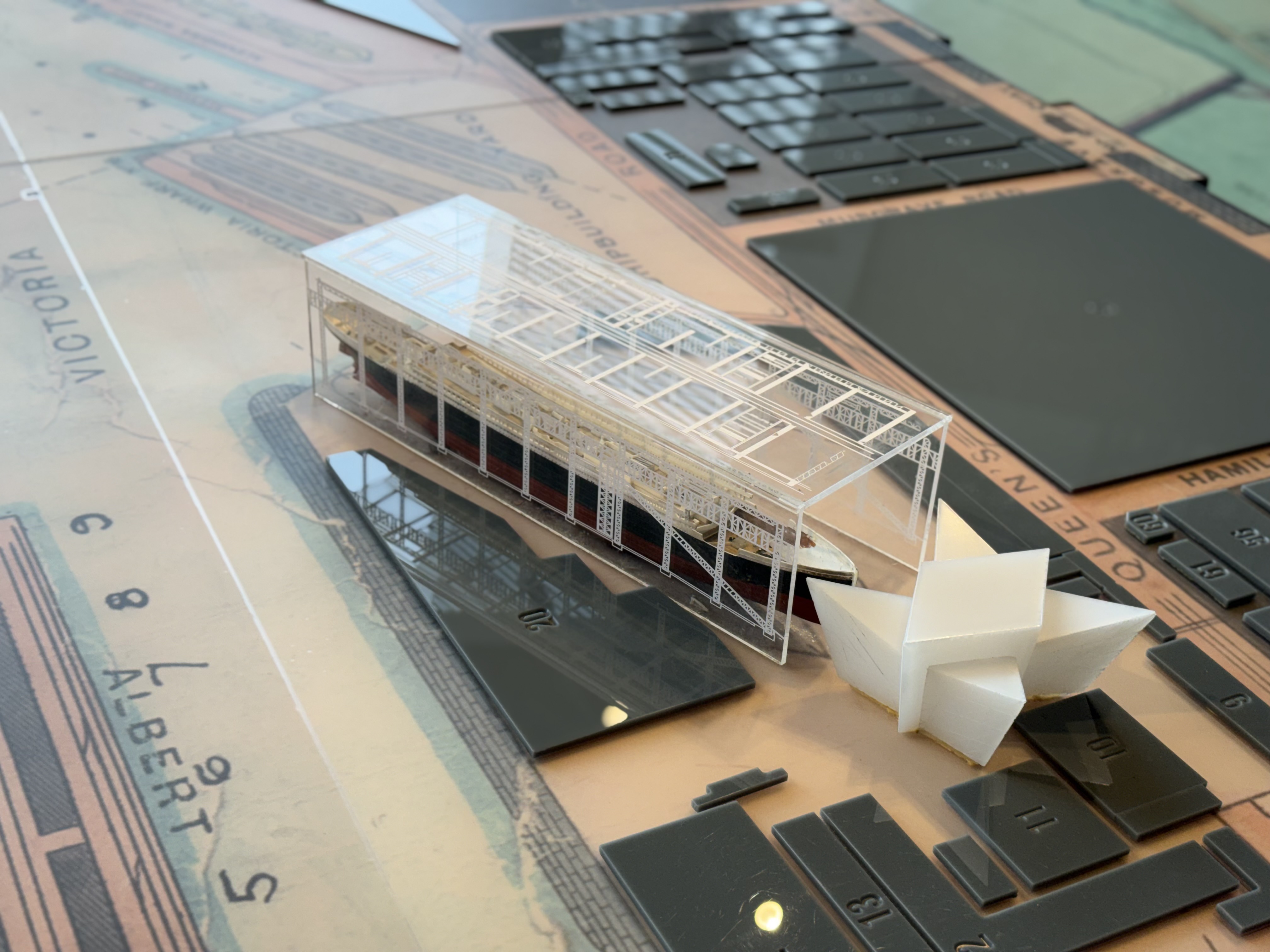 Backtracking a moment, the launch section was fairly neat from a scale perspective. The museum is a big building on the site of the old shipyard. The Titanic was built right next to the museum. You get a great view of the location of the slipway, and this neat scale model showing how big the ship was in comparison to the eight-story building.